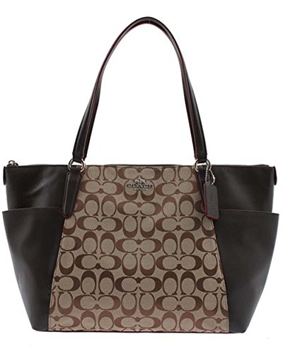 Best Seller! Coach Womens Signature 12 CM Ava Tote Handbag Khaki Mahogany Review