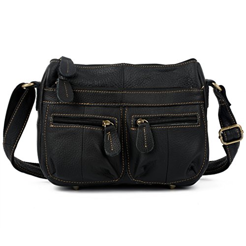 Best Seller! Yaluxe Women's Soft Cowhide Leather Multiple Zipper pockets Cross Body Shoulder Bag (Black) Review